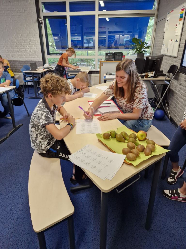 Wij werken vanuit leerlijnen met duidelijke doelen. Kinderen krijgen de tijd en ruimte die zij nodig hebben: waar mogelijk versnellen zij, waar nodig krijgen zij extra ondersteuning. Binnen een heldere structuur leren kinderen plannen, keuzes maken en verantwoordelijkheid nemen voor hun leerproces. Zij werken individueel of samen en kiezen een werkplek die bij hen past. Zo ontwikkelen zij een actieve, lerende houding en zelfvertrouwen.