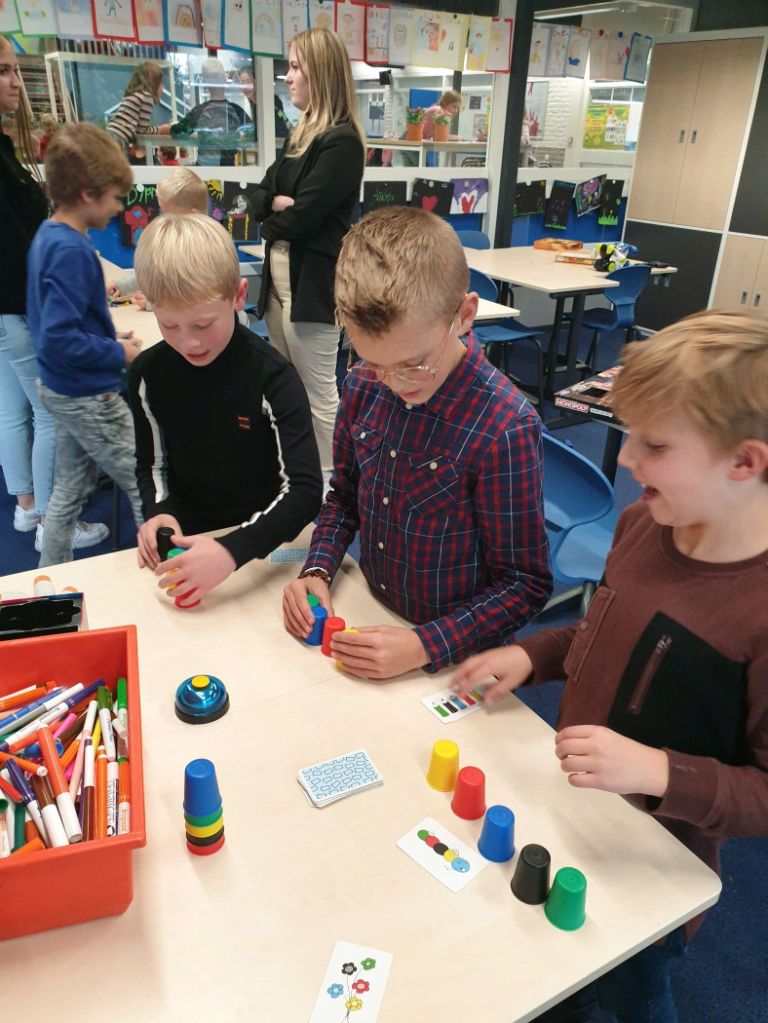 Wekelijks is er een leerkracht aanwezig die deze groep kinderen instructie geeft en helpt bij de planning van de lesstof voor de aankomende week. Deze groep kinderen werkt regelmatig samen aan opdrachten op het leerplein. We noemen ze onze prisma groep.